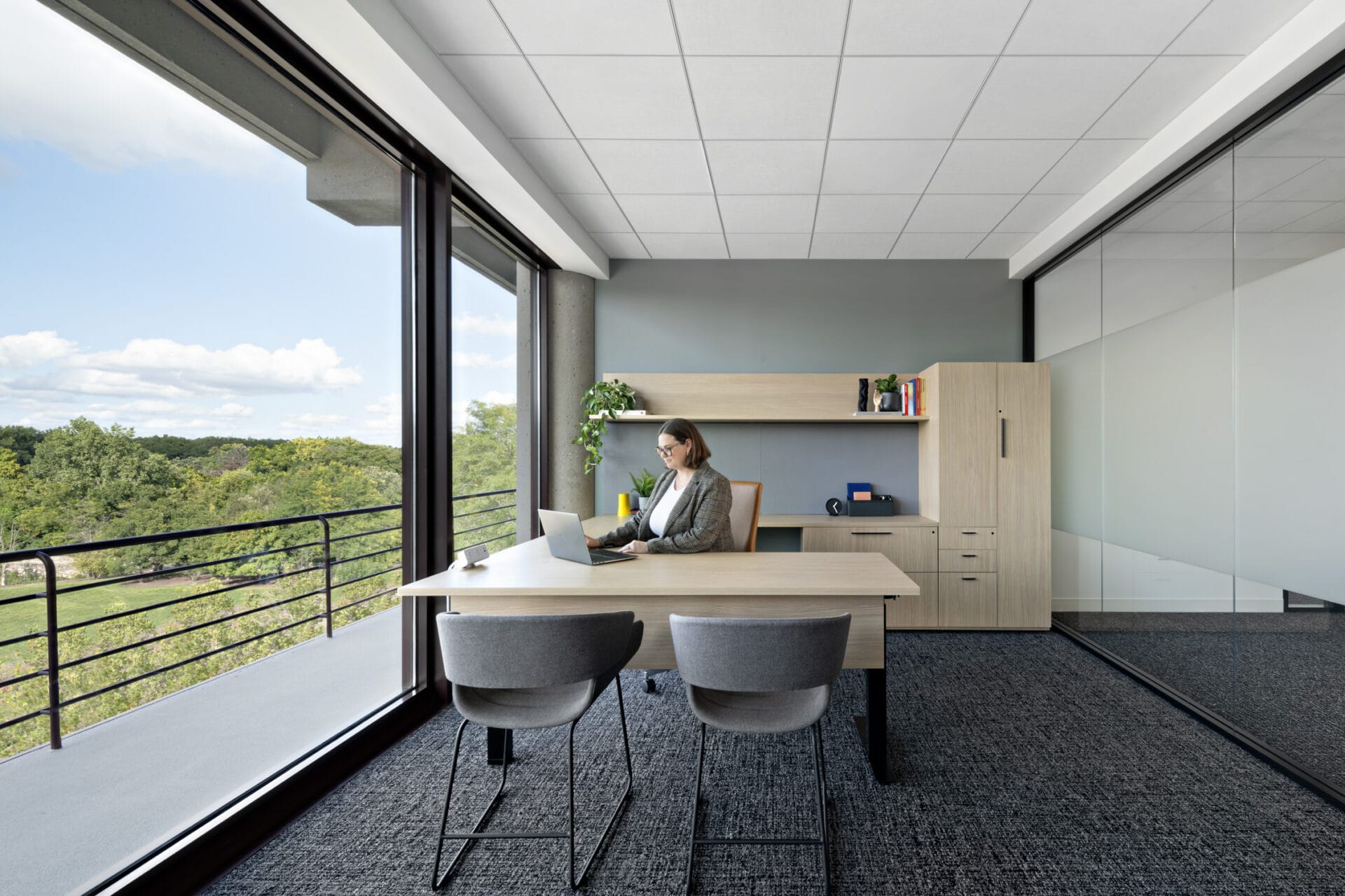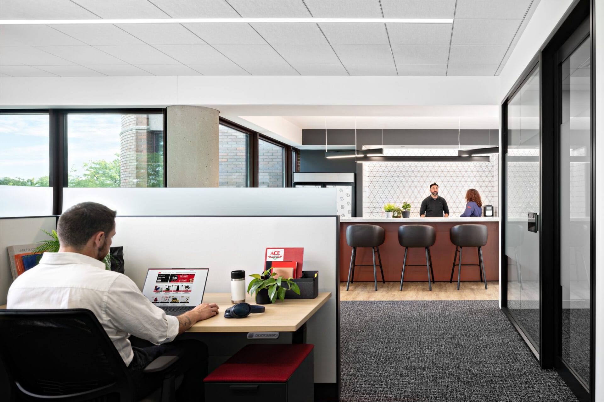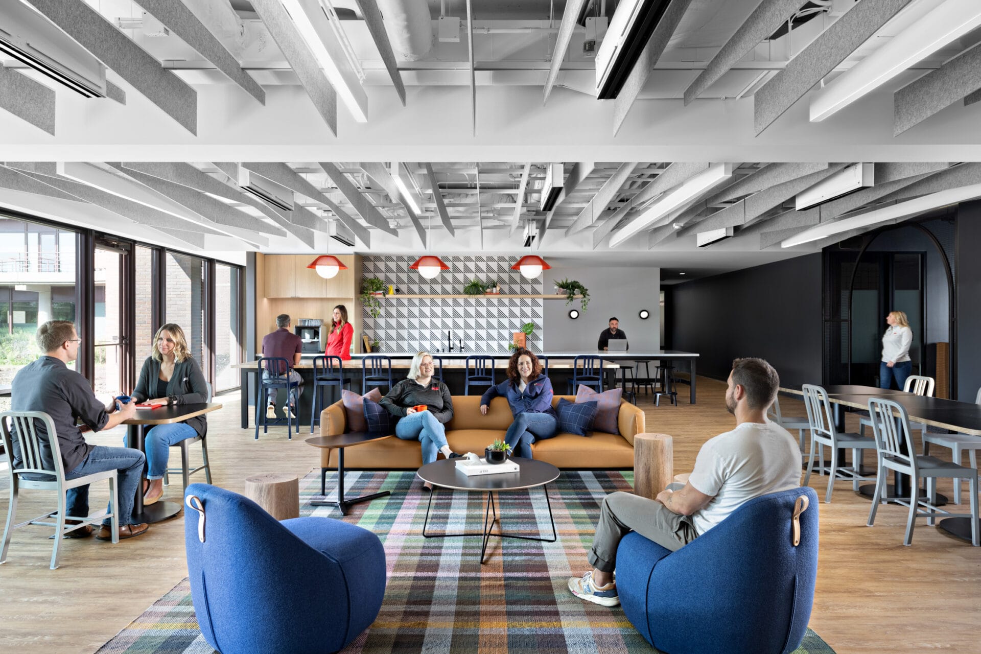 The renovation repurposed many of the main building’s original architectural elements, including a large center atrium and skywells that allow ample natural light to flow throughout the space. Skender utilized the existing six-inch raised-floor system for all electrical and low-voltage infrastructure, which kept the open areas clear. To combat external supply chain challenges, Skender leveraged flexible phasing and work sequencing to further streamline the construction schedule for on-time and on-budget delivery.