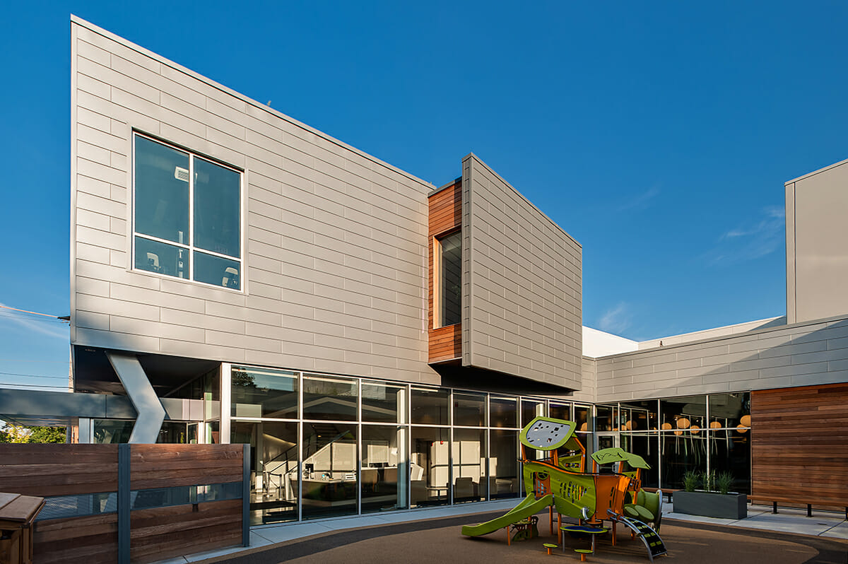 The project includes youth and preschool classrooms, a gymnasium, medical clinic, art studio, community cafe, technology center, fitness center and playground.