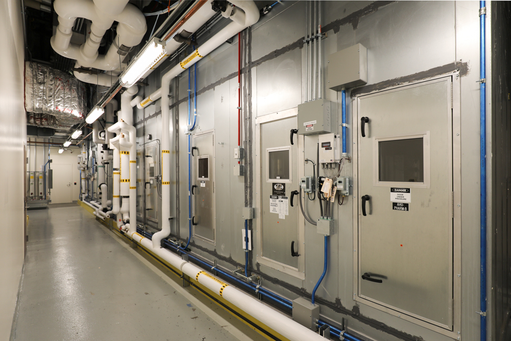 The project features six compounding spaces constructed using cleanroom design to keep airborne particles within specified limits.