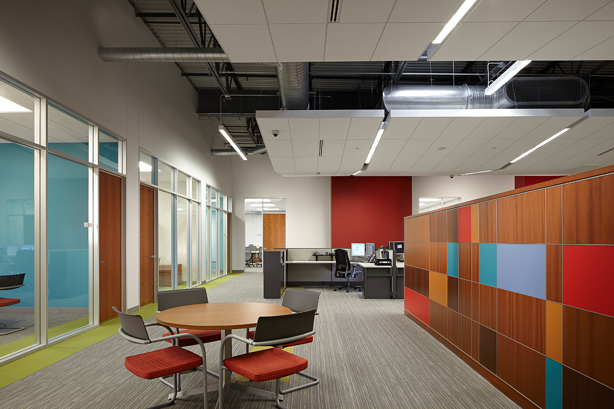 This automated R&D, manufacturing and dispensing facility includes a new data center, second-floor mezzanine, exterior loading docks, offices and food service space.