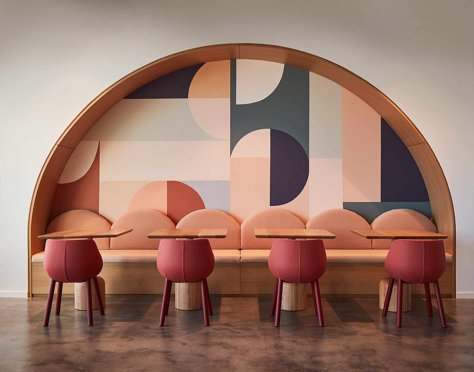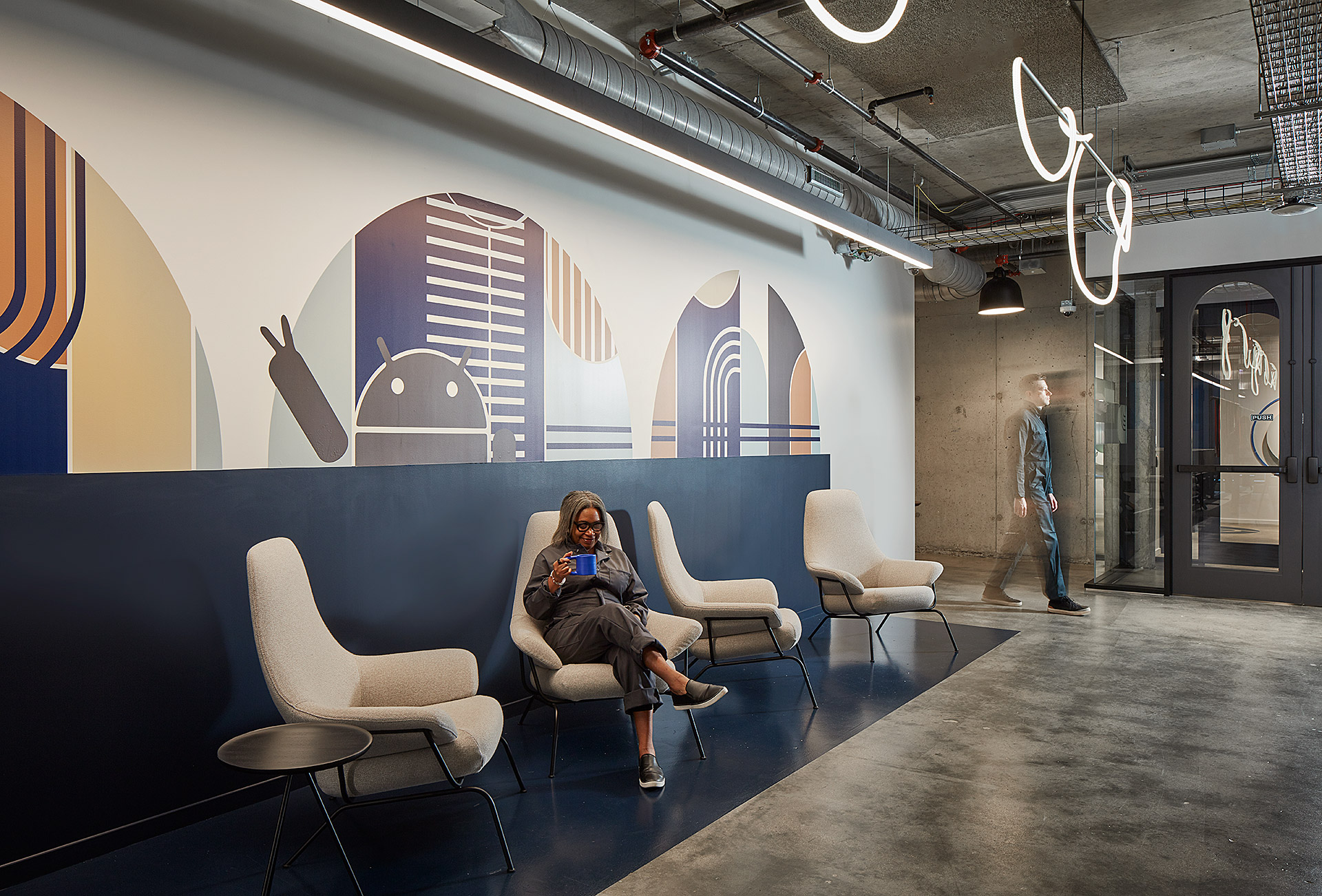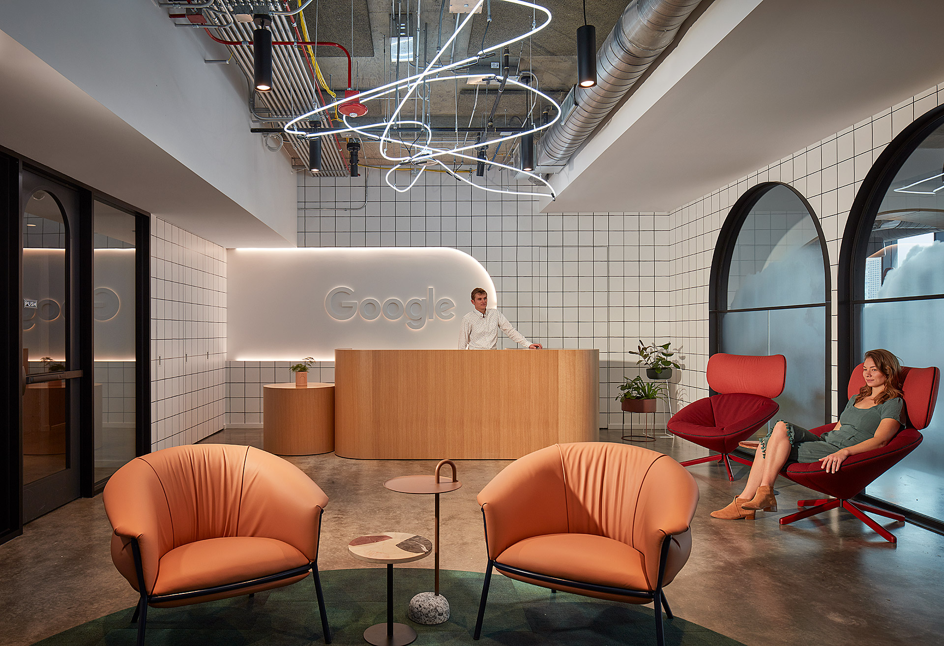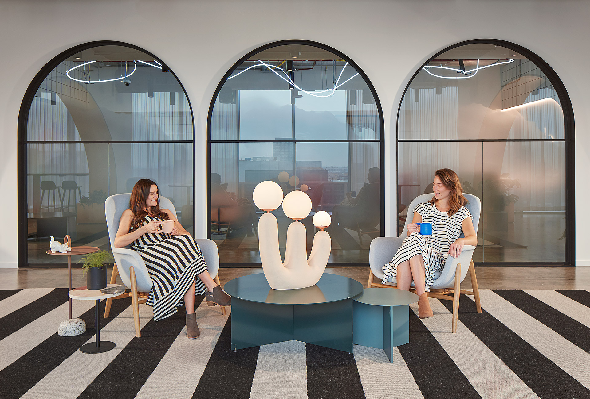 It features a commercial cafeteria, multiple micro kitchens, a conferencing and training floor, a connecting stair, open office workstations, huddle rooms and private workspaces.