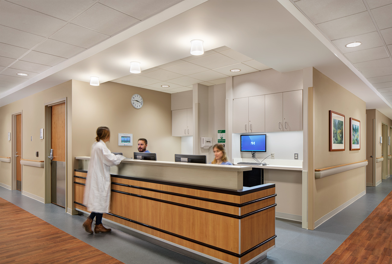 The project included the repurposing of existing shell and admin spaces for new adaptive patient rooms and support areas.