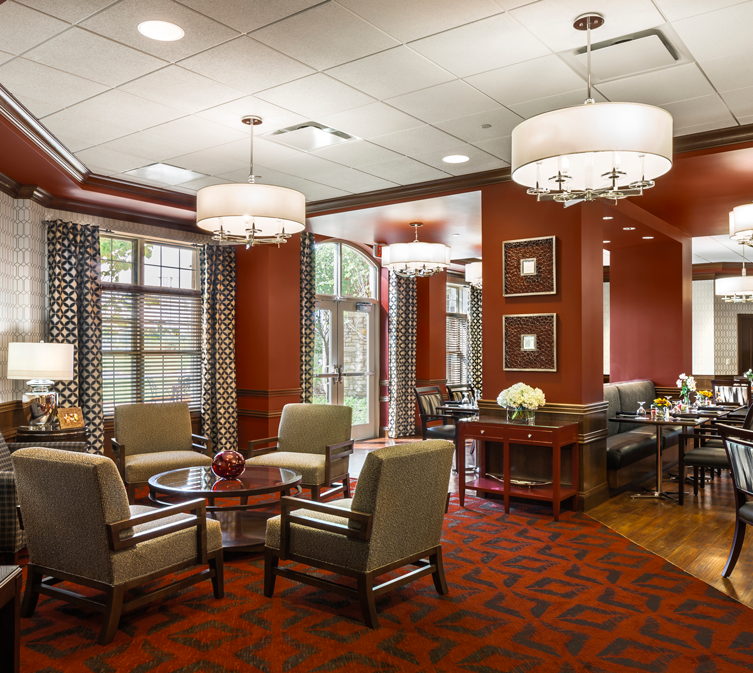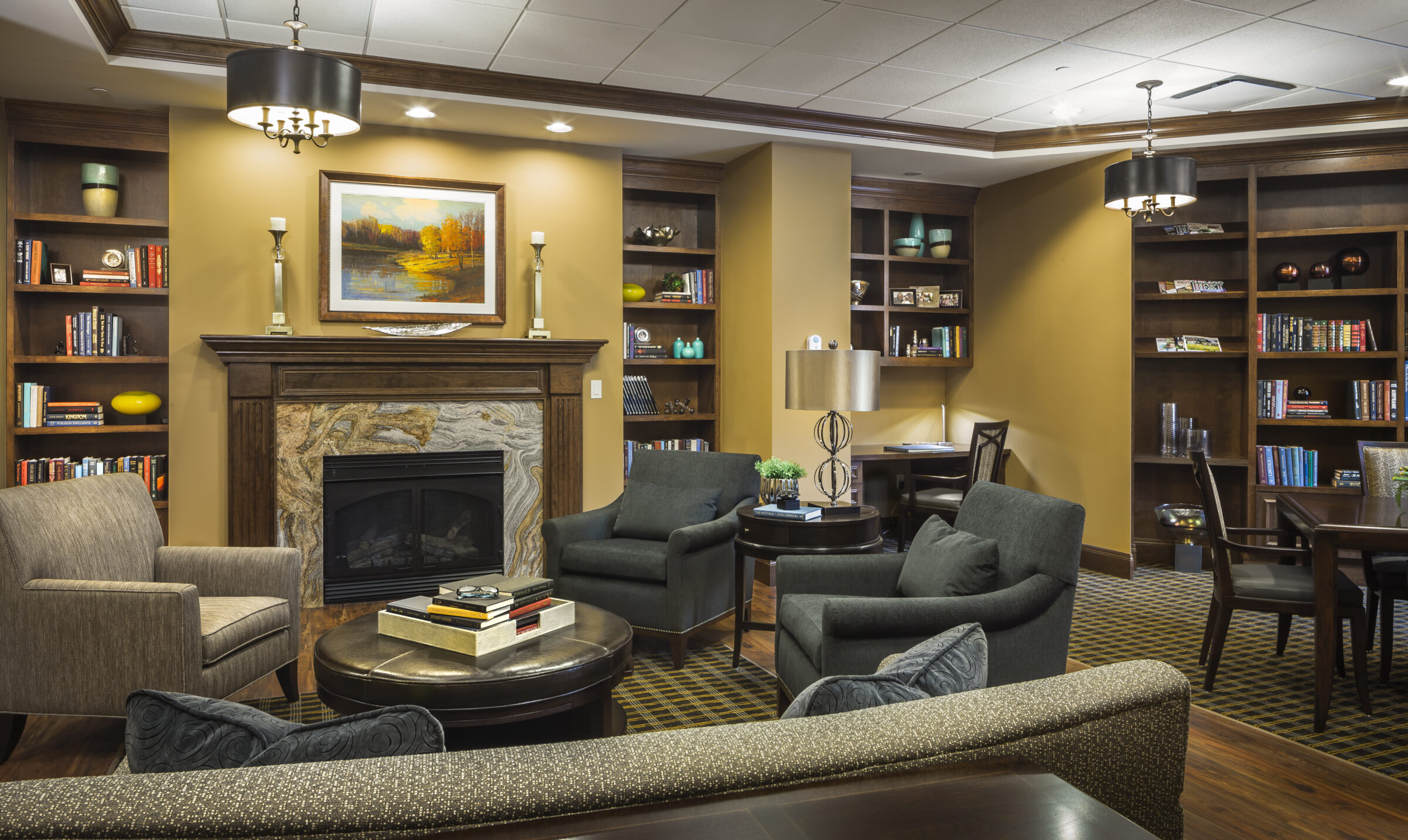 The second floor is devoted to memory care services, with 24/7 nursing staff and secure spaces that allow residents with Alzheimer’s or other forms of age-related dementia to thrive. The building is a cast-in-place structure with a masonry exterior.