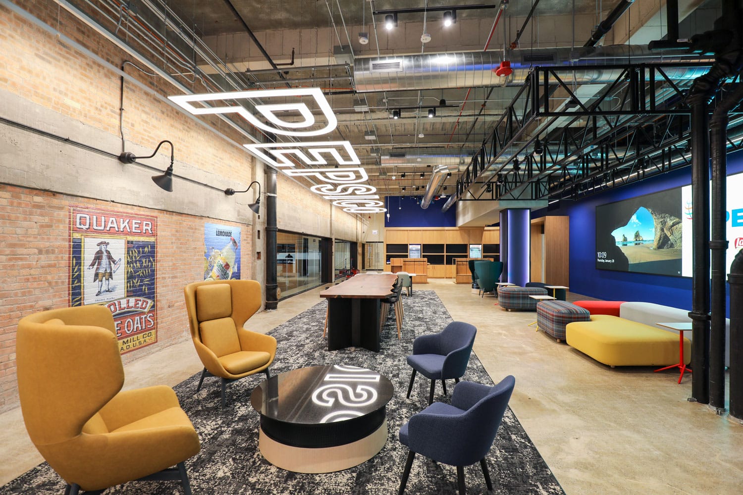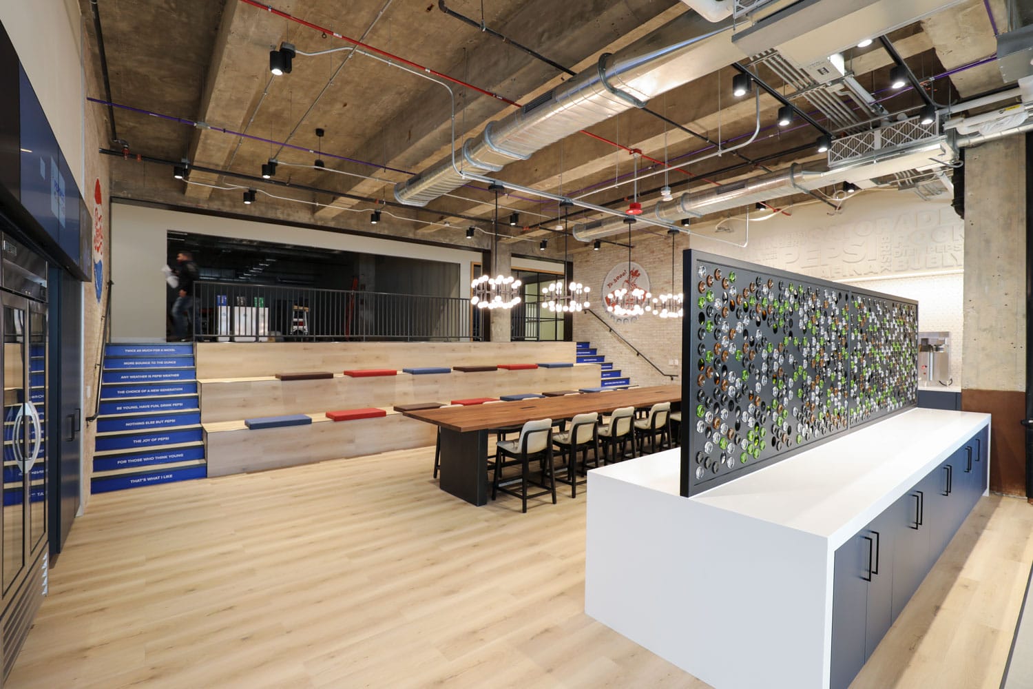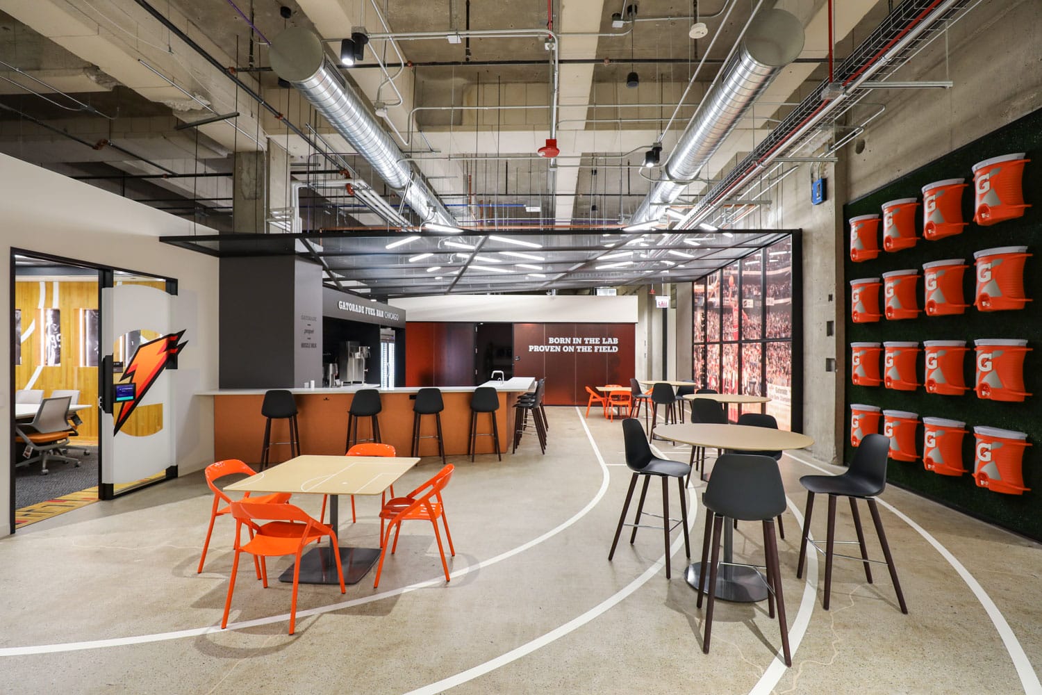 The new space for the leading consumer food and beverage company features an open office design with ample conference space, pantries, a cafeteria and social hubs. Highly customized branding and audiovisual features are scattered throughout the vast floorplan, reflecting the brand’s vibrant character, history and culture.